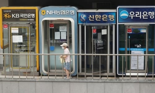 지난 8월 시중은행들의 현금자동입출금기가 나란히 서 있는 모습. 연합뉴스
