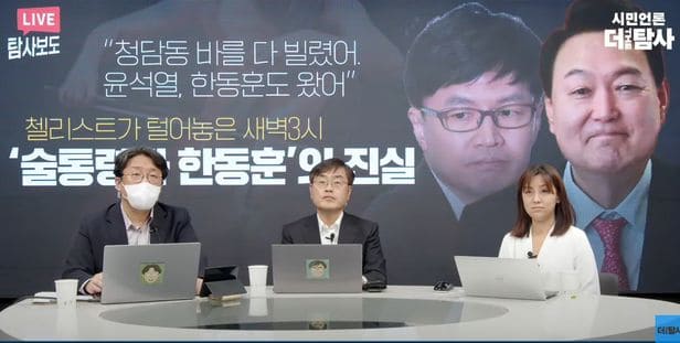더탐사는 지난해 10월 윤석열 대통령과 한동훈 법무부 장관이 김앤장 변호사들과 청담동 고급 술집에서 심야 술자리를 가졌다는 의혹을 제기했지만 목격자로 지목된 첼리스트 A씨는 지난해 11월 경찰에 출석해 “그 내용이 다 거짓말이었다”고 진술하면서, 가짜뉴스를 유포한 것으로 드러났다.