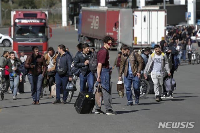 지난해 9월 27일(현지시간) 러시아인들이 조지아 국경을 넘은 뒤 이동하고 있다. 블라디미르 푸틴 러시아 대통령이 예비군 동원령을 발표한 뒤 국외로 탈출하는 러시아인들이 늘고 있다. 2022.09.28. AP/뉴시스
