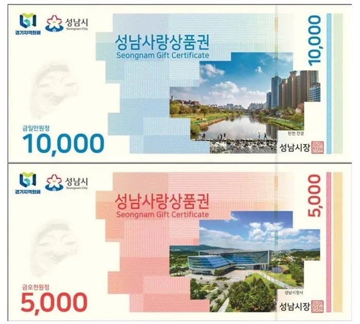 성남시 지역화폐인 종이 상품권 /성남시 제공