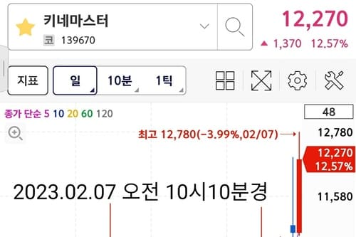 일단 포커스신문사(이혜숙 대표)와 솔본이 키네마스터를 움직이고 있는 것으로 보여지고, 기존 솔본인베스트먼트(투자회사)와 포커스신문사가 각각 9.42%, 4.28%씩 보유하고 있던 것을 작년 11월에 솔본이 모두 매수했다고 한다. 키네마스터에 거는 기대가 컸다고 보여지고, 한번 경험해본 급상승이 키네마스터를 단순한 자회사로 보는 것을 넘어서는 것이 아닐까 하는 생각도 든다.