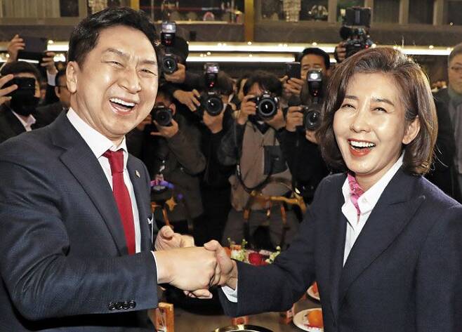 김기현, 나경원이 환하게 웃는 얼굴을 보니 생뚱맞기도 하고, 그냥 기분이 좋기도 하다. 결과도 좋기를 바라지만 그게 쉬울까 싶다.