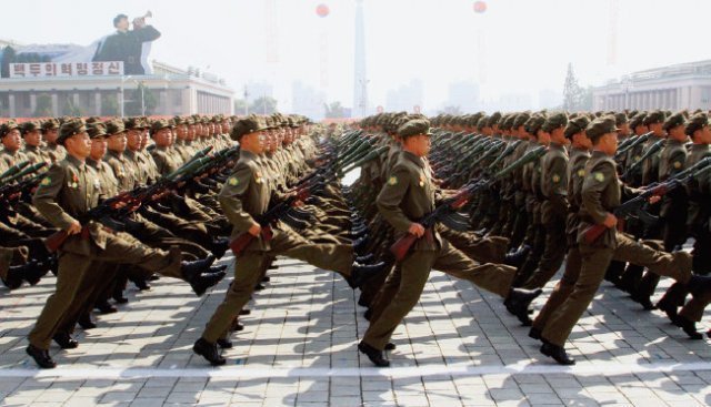 북한군 열병식에서 대전차 무기를 든 병력이 행진하고 있다. 뉴시스