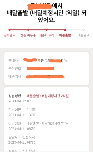 어제 배송조회를 해봤더니 갑자기 미배달이라고 떠서 깜짝 놀랐다. 13시였기 때문에 택배기사들이 바쁘게 움직일 시간이라고 생각됐지만, 아마도 노조의 압박이나 여러가지 이유로 배송을 중단하게 된 것 같다.