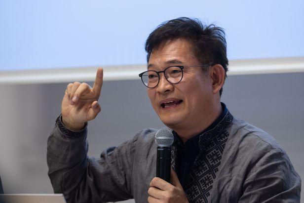 지난 13일 오후(현지 시각) 프랑스의 정치학 중심 명문 그랑제콜인 파리정치대학(Sciences-po・시앙스포)에서 열린 송영길 전 더불어민주당 대표의 ‘한국 전쟁과 우크라이나 전쟁의 유사성’ 특강에서 송 전 대표가 참석한 학생들의 질문에 대답하고 있다. /뉴스1