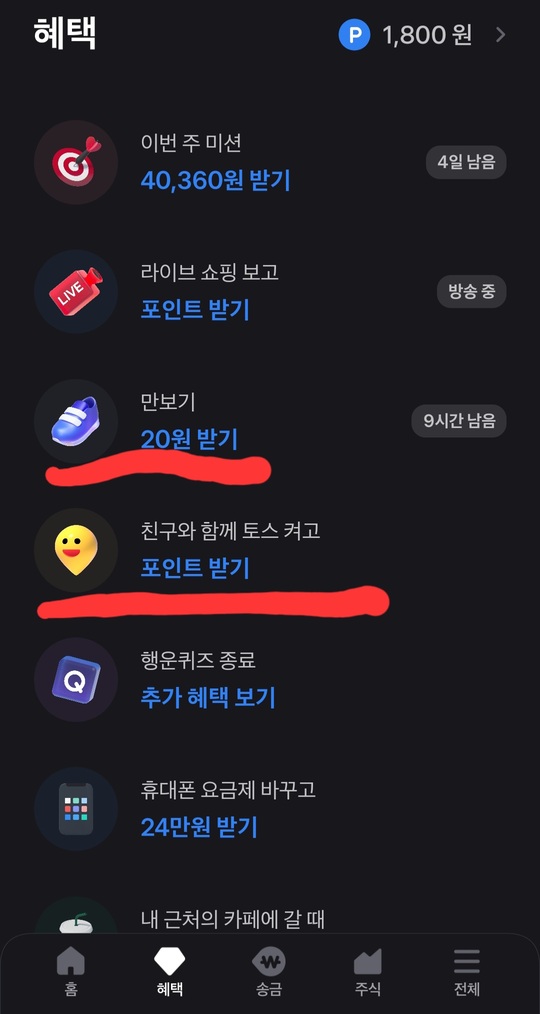 [토스 맛집] 친구와 함께 토스 켜고 받을 수 있는 금액이 245원 이상 만보기 140원 쿠팡 20원 동네 공원에 갔다가 깜짝 놀라며 순식간에 포인트 받기 성공