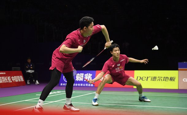 남자복식의 서승재(왼쪽)-강민혁 . 쑤저우|신화 연합뉴스