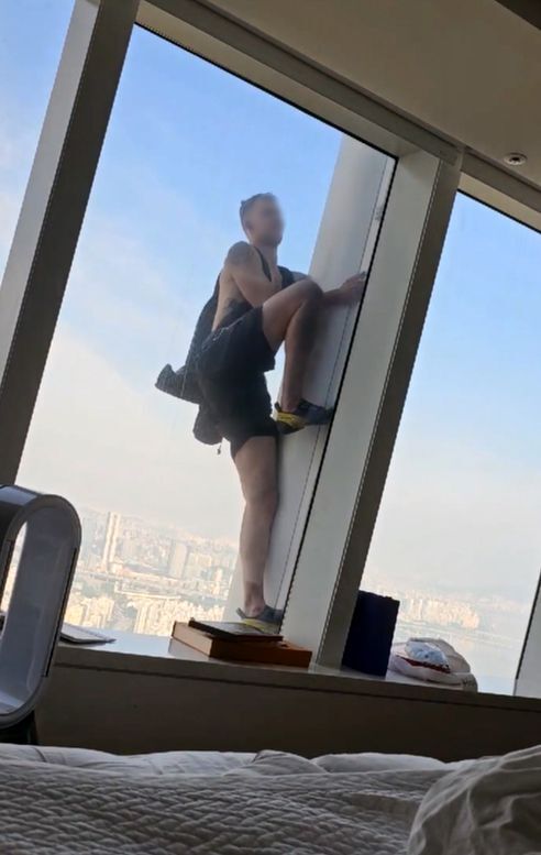12일 한 언론에 제공된 제보 영상에는 상의를 탈의하고 반바지를 입은 남성이 작은 배낭 하나만 멘 채 맨손으로 건물 외벽을 기어오르는 모습이 담겼다.