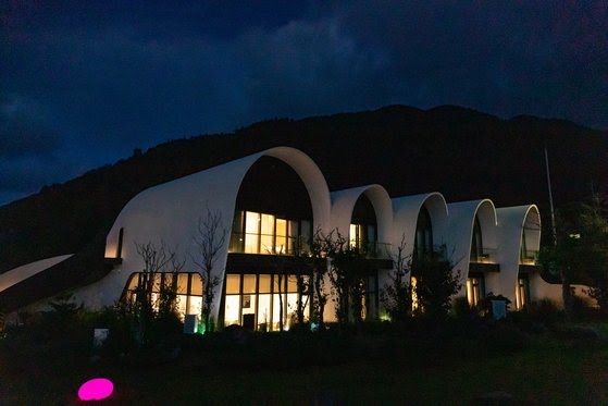 코스모스는 개장 당시부터 화제가 됐다. 울릉도는 물론 국내에 흔치 않은 호화로운 시설과 빼어난 건축미 때문이다. 하버드대 건축과 출신인 김찬중 경희대 교수(건축사무소 더시스템랩 대표)가 설계한 디자인이 독보적이다. 새하얀 건물 두 채는 꽃잎을 연상시키기도 하고, 우주선 같기도 하다. 천문 기상대 컴퓨터로 관측한 해와 달의 궤적을 고려해 설계했단다. 위치도 남다르다. 울릉도에서도 기 좋기로 소문난 송곳봉 자락, 쪽빛 바다가 시원하게 펼쳐지는 명당에 자리한다. 풍수지리와 건축에 문외한이어도 자연과 건축물이 기막히게 어우러진 걸 단박에 알 수 있다. 2020년 월드 럭셔리 호텔 어워즈에서 '럭셔리 빌라 리조트' 부문을 수상했고, 한국관광공사로부터 울릉도 최초의 품질인증 숙소로 지정됐다는 건 부차적인 설명일 따름이다.