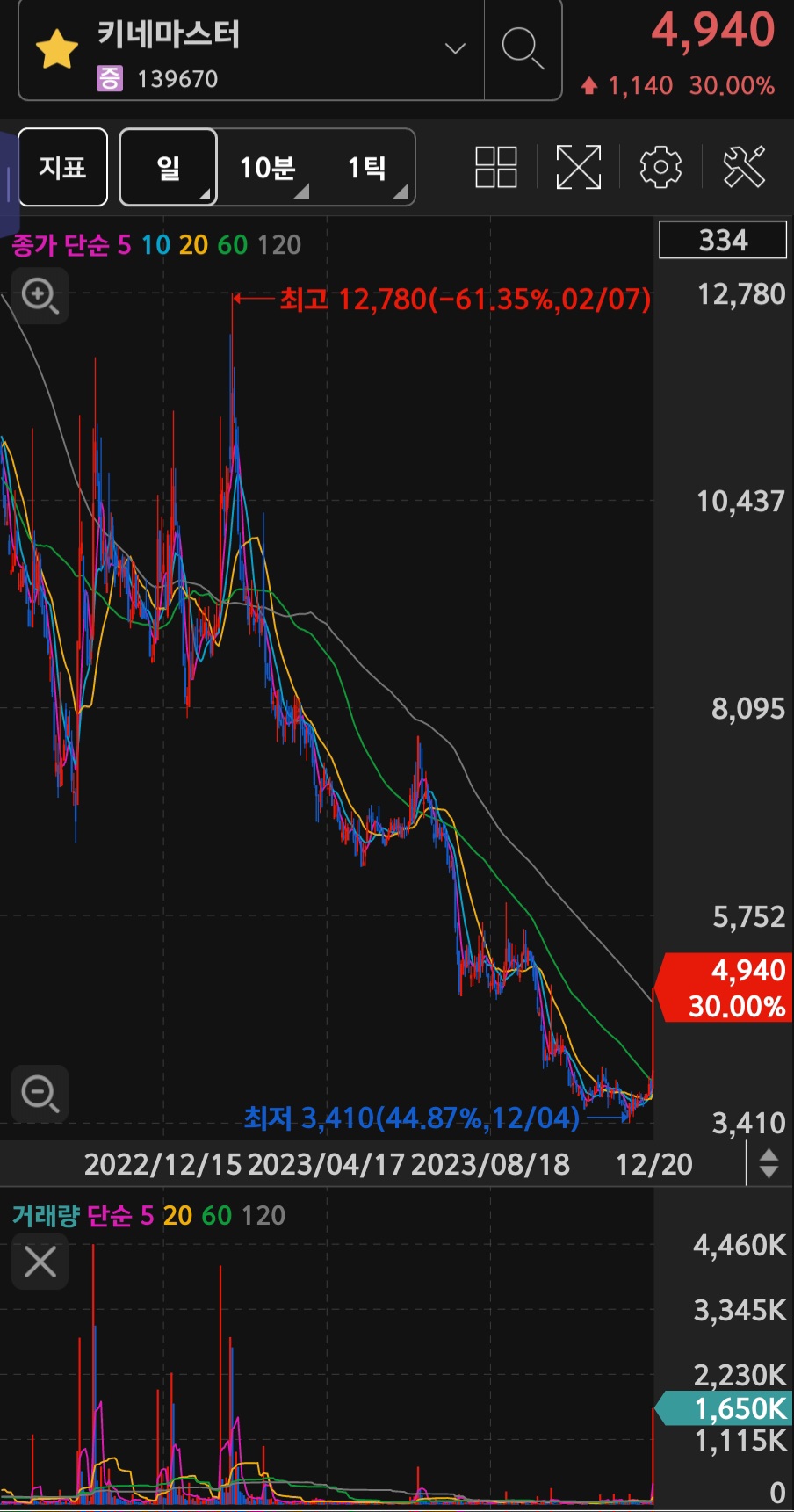 2023년 2월7일에 12,780원을 끝으로
