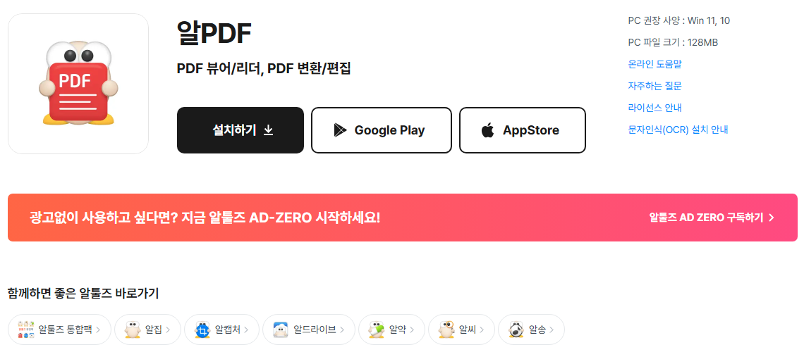 알PDF를 설치하자. 물론 광고가 삽입될 수도 있다.