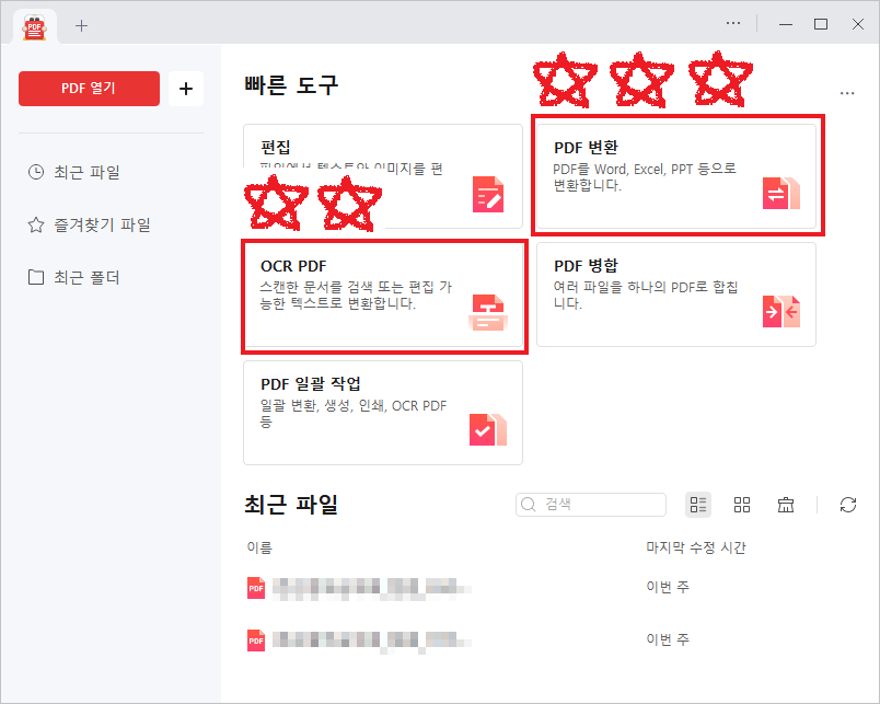 그래서 그냥 'PDF 변환' 기능을 이용할 것을 권장드리는 바이다.